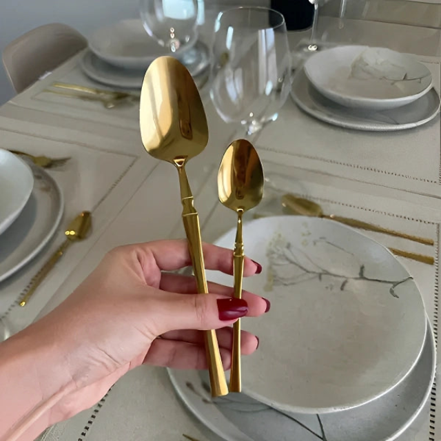 Jogo completo de 24 peças, perfeito para todas as suas necessidades na cozinha! Design clássico e elegante em aço inox 304, uma liga metálica resistente, proporcionando durabilidade e resistência! Cabos elipsais que se encaixam perfeitamente em suas mãos, garantindo conforto no uso!